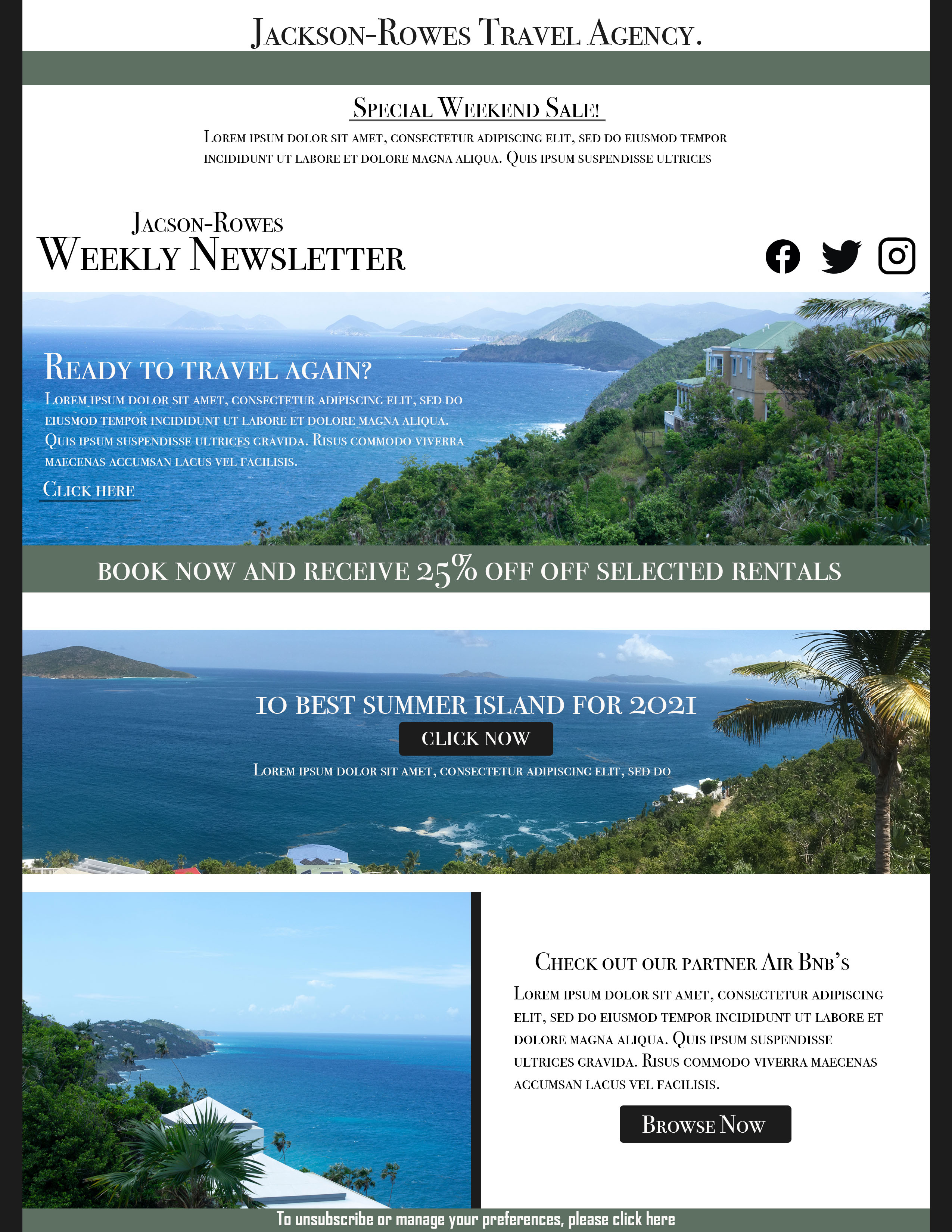 Mock email letter to show to a potential client who was planning to start a travel agency business.